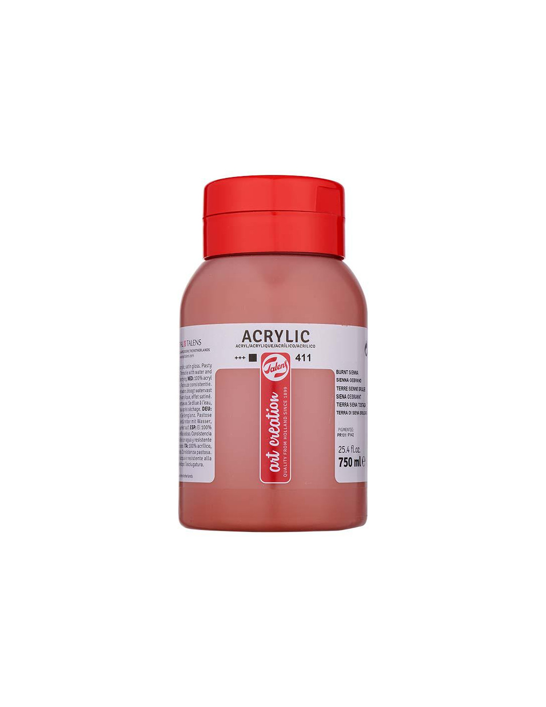 ACRILICO TALENS ART CREATION BOTE 750 ML TIERRA DE SIENA TOSTADA 411 Un acrílico de calidad fiable a base del 100% de resina de acrilato. La pintura es pastosa, cuando está seca tiene un brillo sedoso y se puede sobrepintar casi de inmediato. Tierra De Siena Tostada (411) es un color opaco con una excelente resistencia a la luz (+++)