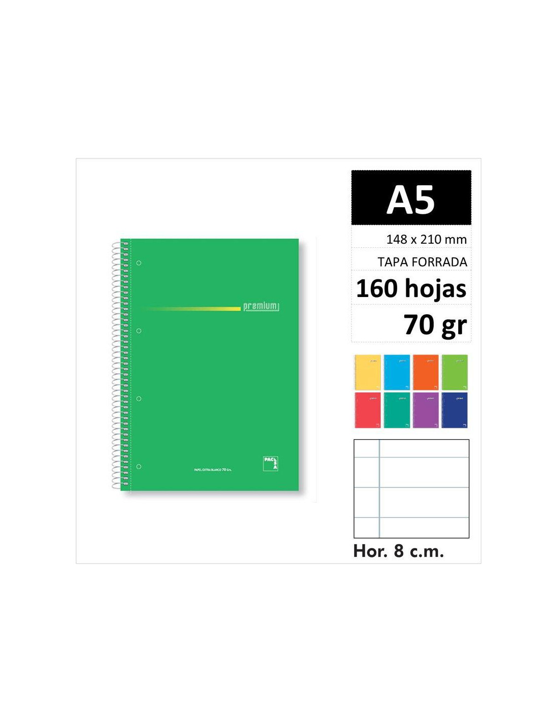 CUAD.PACSA PREMIUM A5 160H70GR C5 SURT 16292