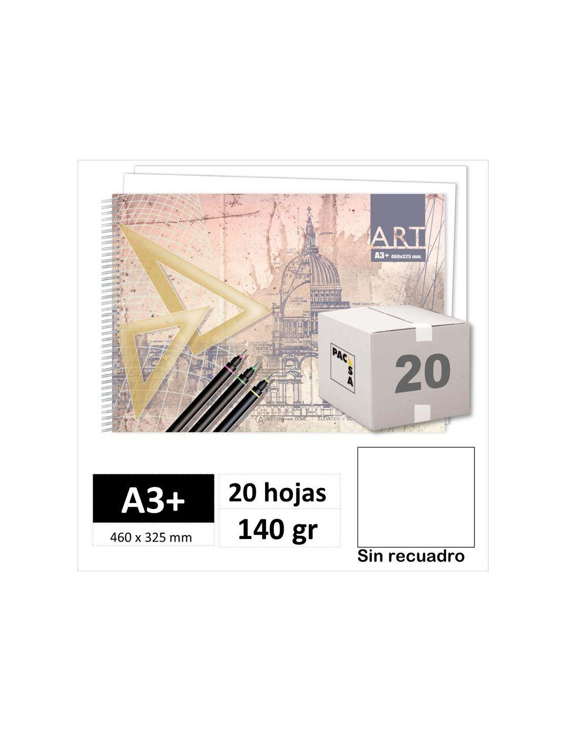 PAPEL DIBUJO PACSA ART BLOC ESPIRAL 20 HOJAS A3+ 325X460 MM 140GR MOD.18843 CAJA 20 UDS