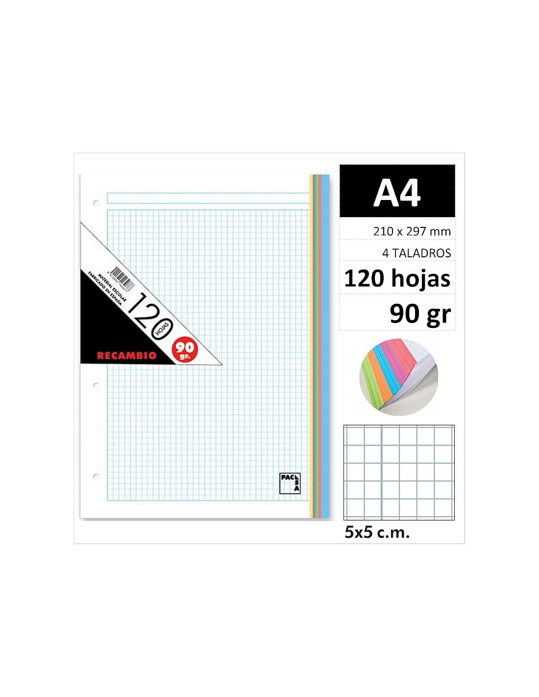 RECAMBIO PACSA A4 120H 90GR 4 TALADROS CUADRO 5 MM COLORES SURTIDOS MOD.21180