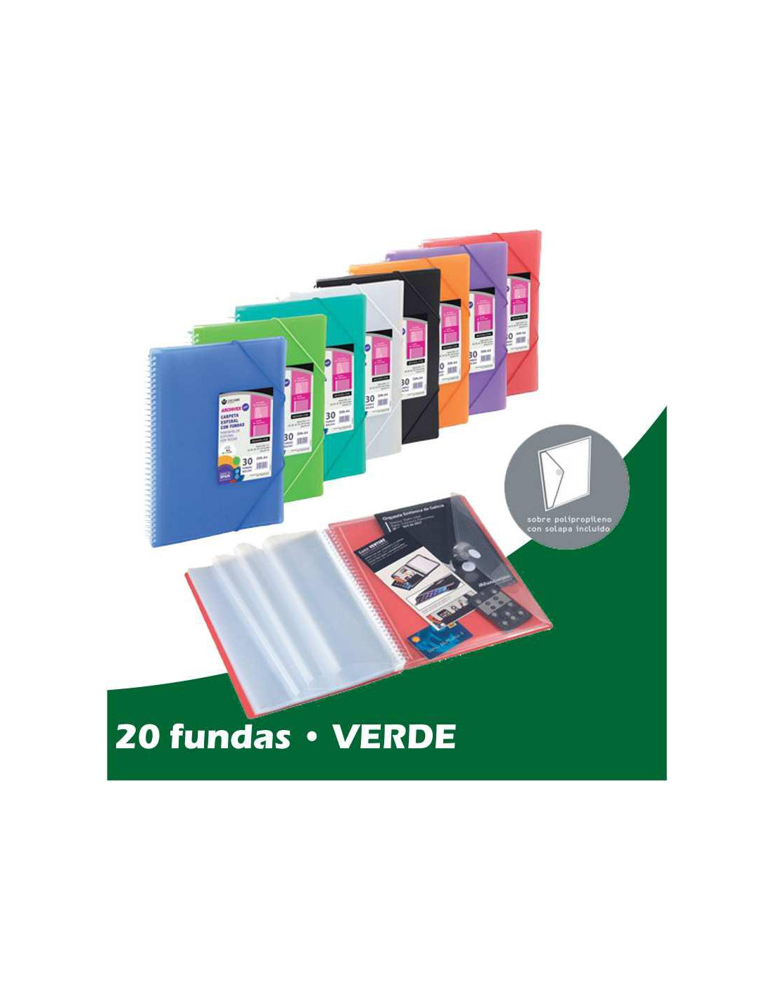 CARPETA CON FUNDAS Y ESPIRAL ARCHIVEX-STAR PERSONALIZABLE 20 FUNDAS VERDE OSCURO