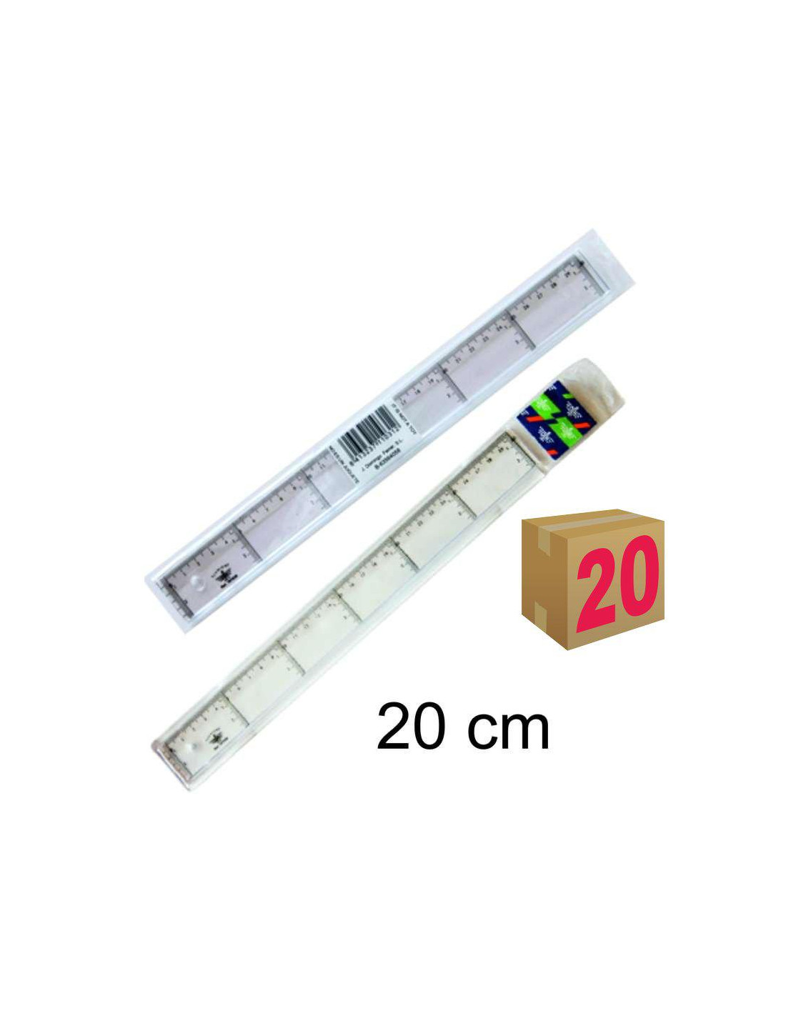 REGLA ESCOLAR DFH TRANSPARENTE CON BISEL 20CM CAJA 20 UDS