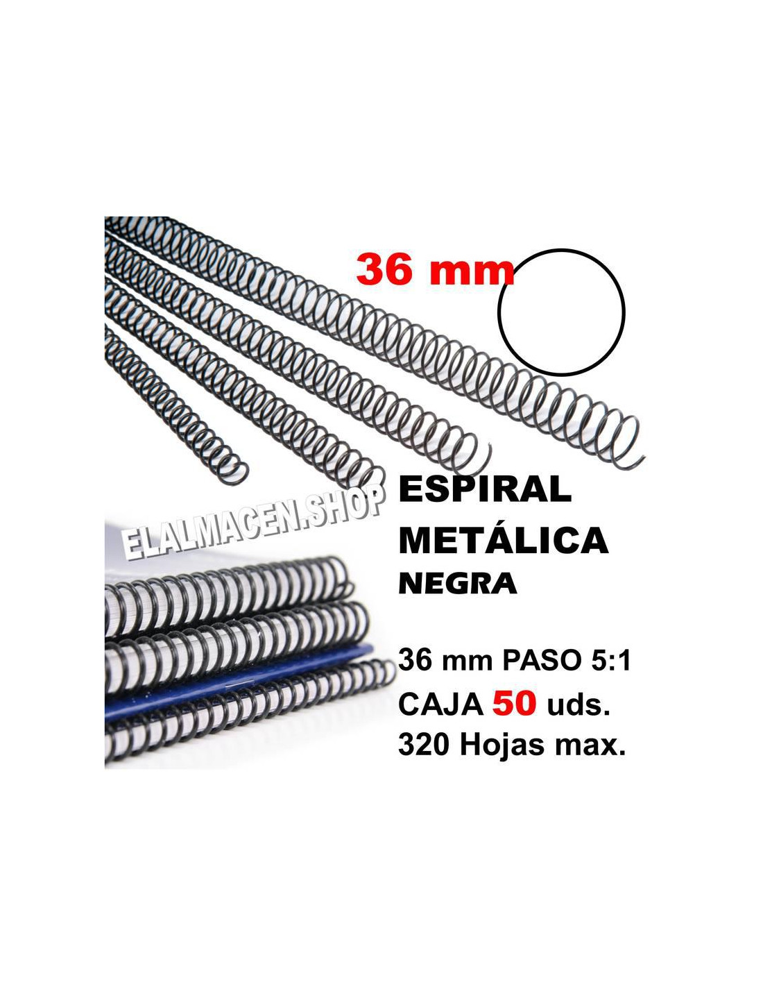 ESPIRAL METÁLICA NEGRA 36MM CAJA 50 UDS
