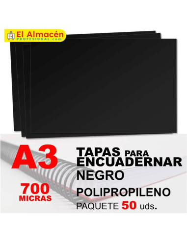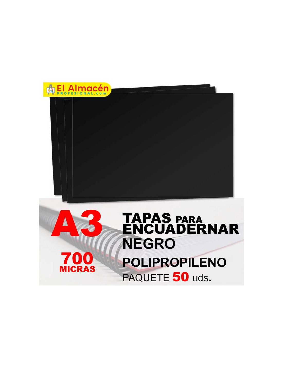 TAPA ENCUADERNAR PP A3 700MIC NEGRA PAQUETE 50 UDS
