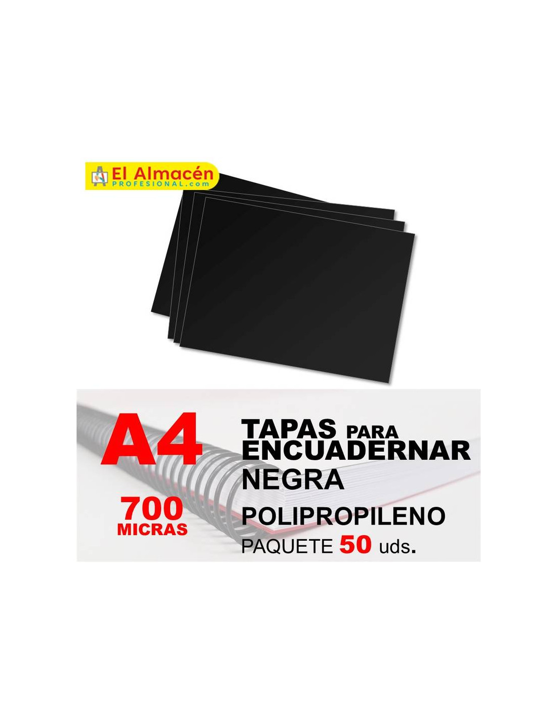 TAPA ENCUADERNAR PP A4 700MIC NEGRA PAQUETE 50 UDS
