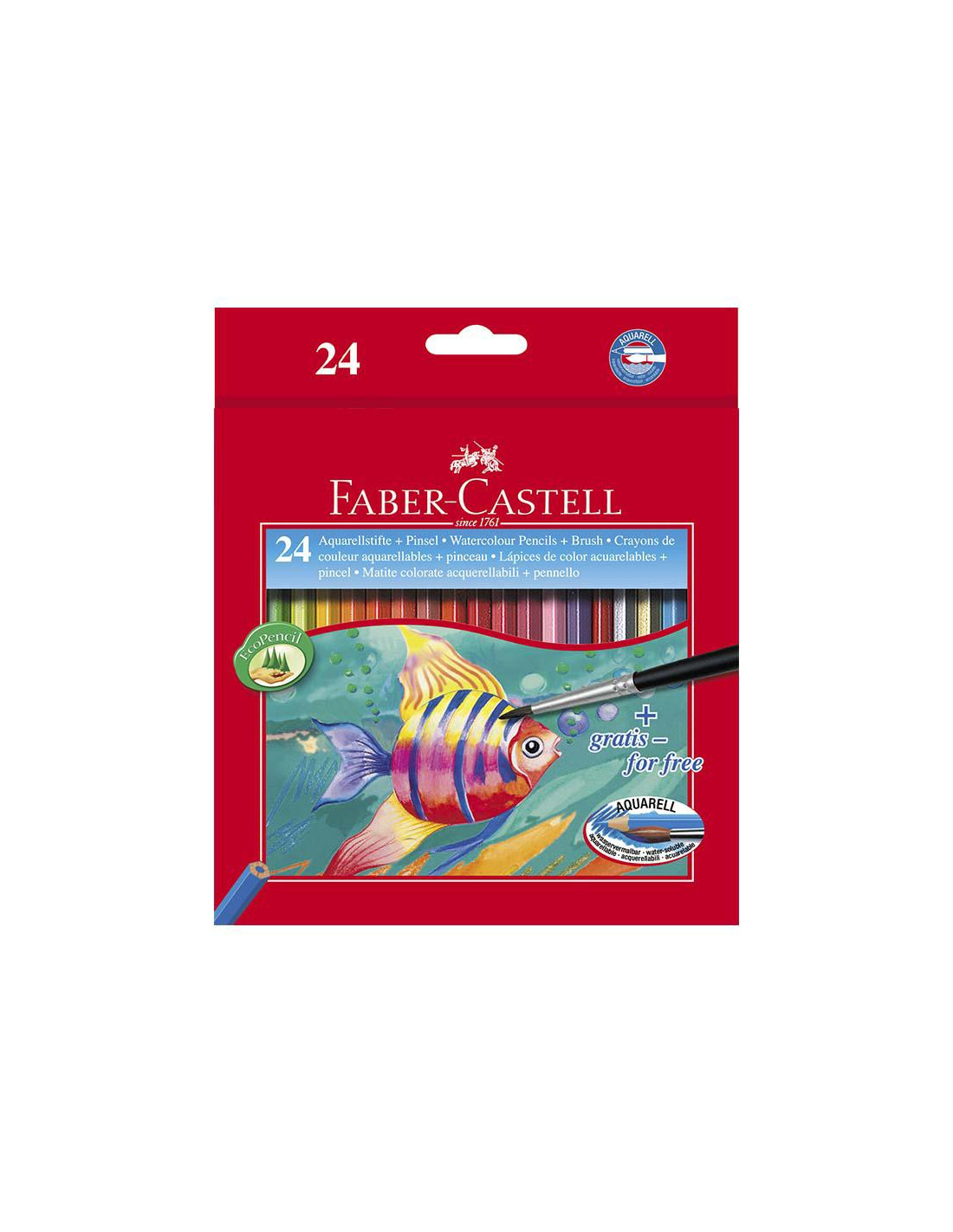 LAPIZ ACUARELABLE ESCOLAR FABER CASTELL CAJA 24 COLORES MAS PINCEL