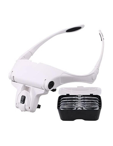 LUPA DISMOER DE CABEZA CON 5 LENTES Y LUZ MOD.19303 Lupa de Cabeza Ergonómica con LED 5 aumentos 1x, 1,5x, 2x, 2,5x, 3,5x. Se necesitan 3 pilas AAA (incluidas)