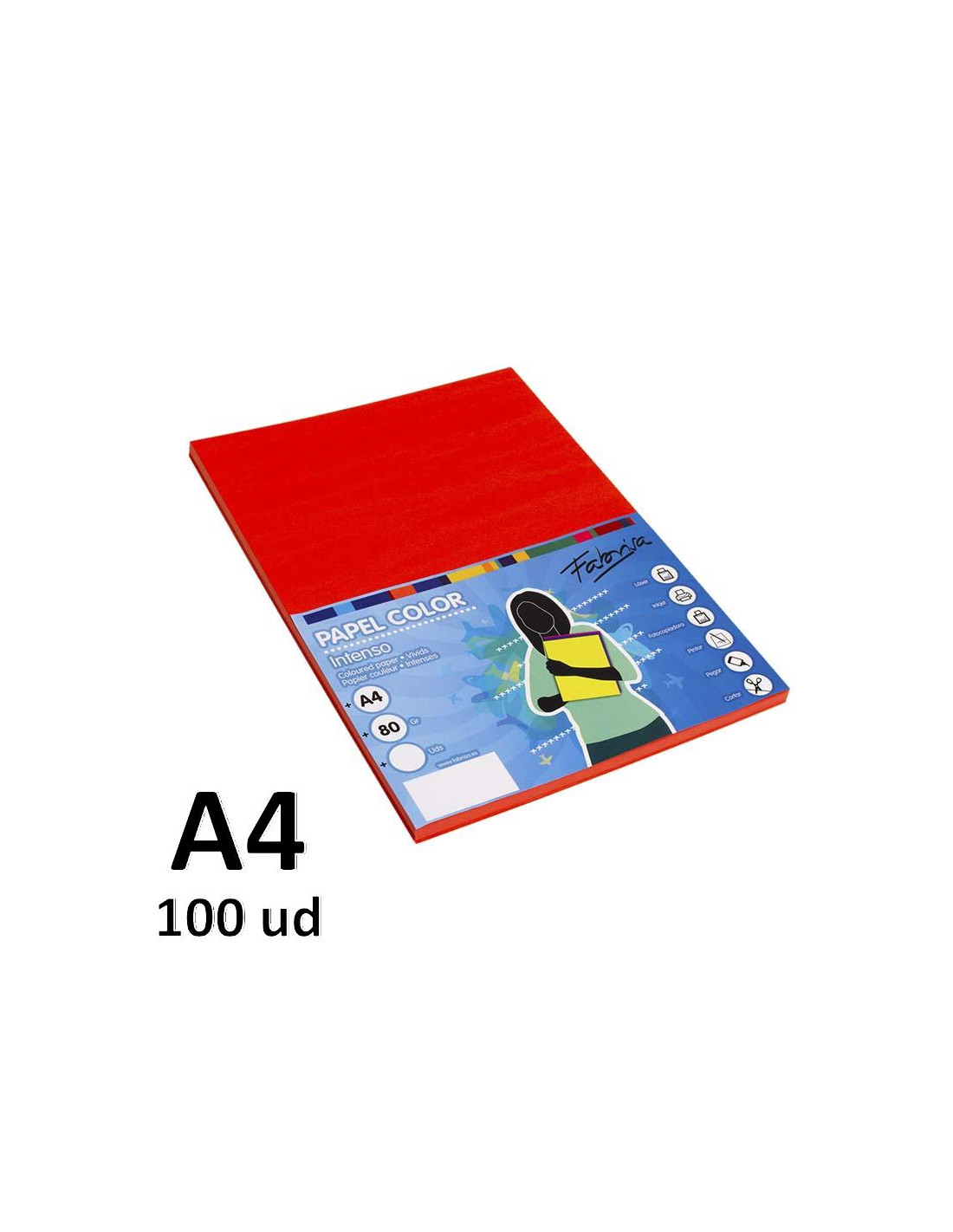 PAPEL FABRISA A4 80GR 100H ROJO