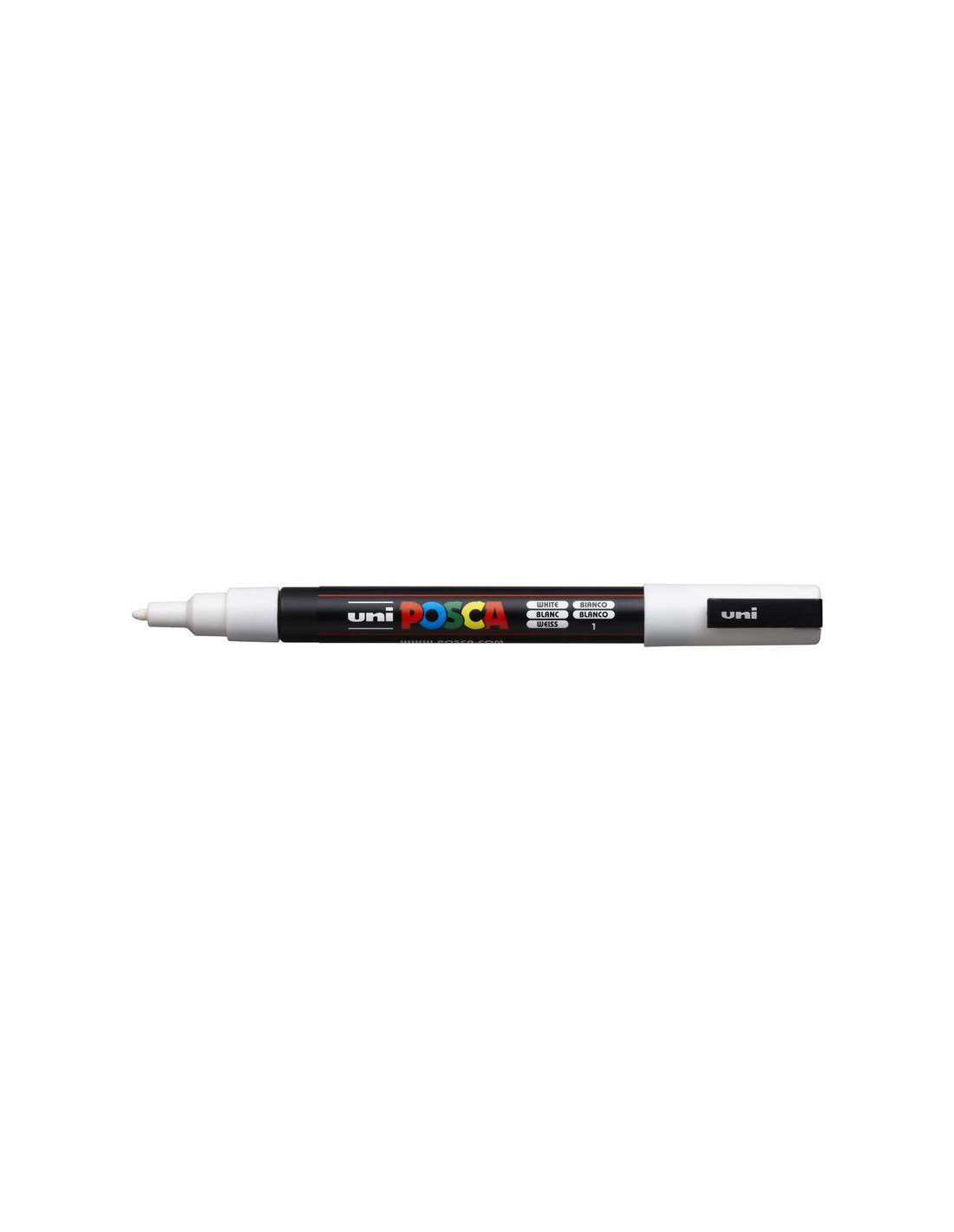 ROTULADOR POSCA PC-3M BLANCO El POSCA PC-3M cuenta con una punta fina y redonda de 0,9 a 1,3 mm, lo que lo convierte en un marcador universal y versátil para todo tipo de creaciones. Es la herramienta preferida por los especialistas gracias a su trazo preciso, limpio y controlado. Su punta redonda y cuerpo delgado permiten trabajar con gran sutileza, ideal para colorear, dibujar, decorar o personalizar sobre cualquier superficie. Perfecto para crear adornos, detalles finos y arabescos, este marcador ofrece la combinación ideal de control y expresividad. Inspiración sin límites, en un formato cómodo y preciso.