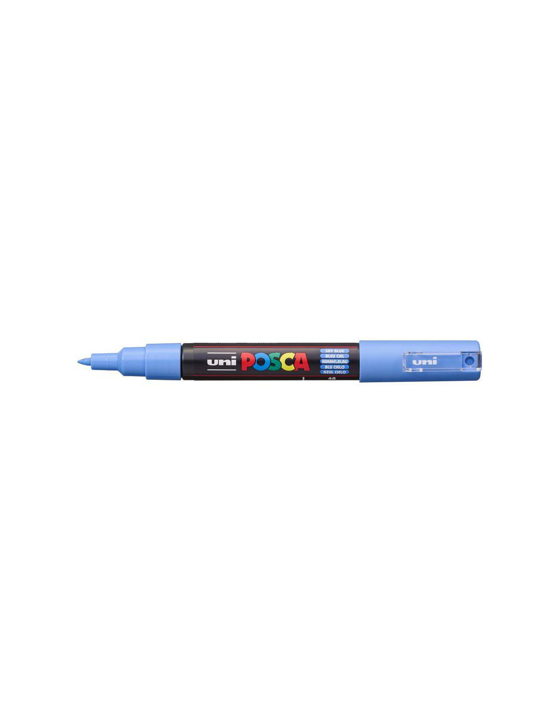 ROTULADOR POSCA PC-1M AZUL CIELO El POSCA PC-1M cuenta con una punta cónica extra fina de 0,7 a 1 mm, ideal para trabajos detallados en formato pequeño. Su trazo preciso lo convierte en la herramienta perfecta tanto para escribir como para dibujar con definición. Gracias a su diseño compacto y versátil, es el marcador ideal para niños, adultos, principiantes y expertos que buscan colorear con precisión. La punta ofrece el equilibrio perfecto: lo suficientemente fina para escribir con claridad, y lo bastante gruesa para aportar expresión al dibujo. Perfecto para crear con detalle, expresar ideas y dar vida a tus proyectos más minuciosos.