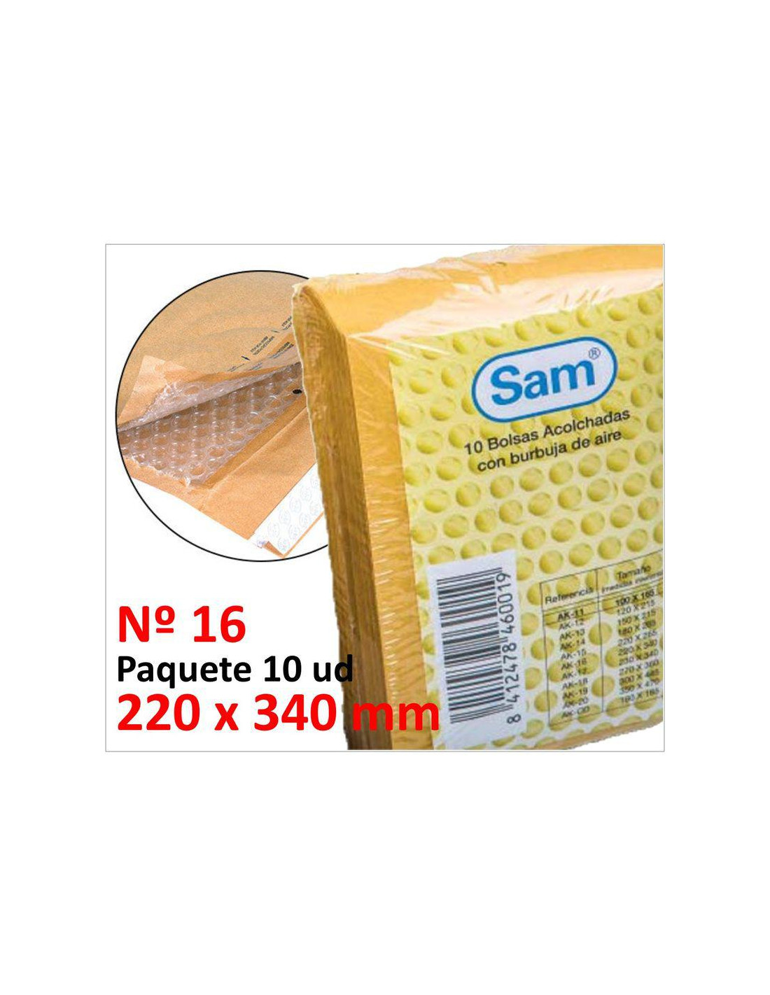 BOLSA ACOLCHADA SAM AUTOPEGUE KRAFT INTERIOR 220X340 MM Nº16 PAQUETE 10 UDS