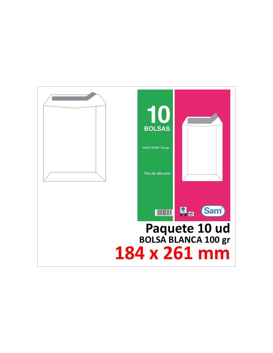 BOLSA DE PAPEL SAM BLANCA 184X261 MM AUTOPEGUE PAQUETE 10 UDS
